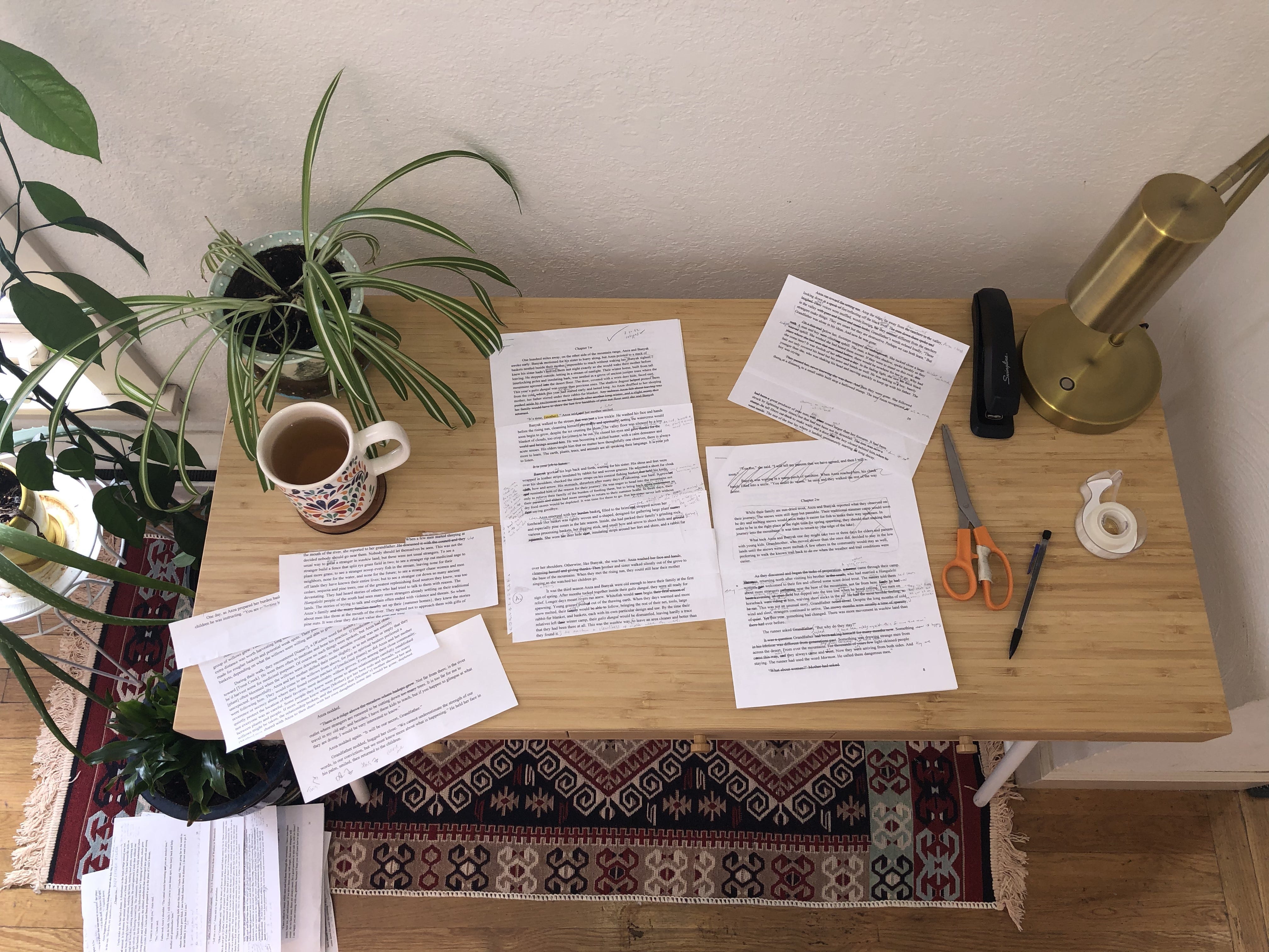 Typically, I resist printing pages so as to not be wasteful, but getting chapters off my computer into tangible form is a critical step that allows me to see what I really have. Right now, I have 3 major sections of my novel all sitting at 80-90% completion (I think, I hope!). They live in their own folders, in one word doc or many. My next step is to print these pages out, cut, splice, edit, update, and merge them all back together.